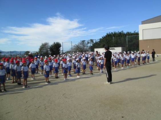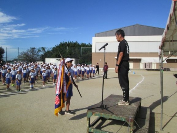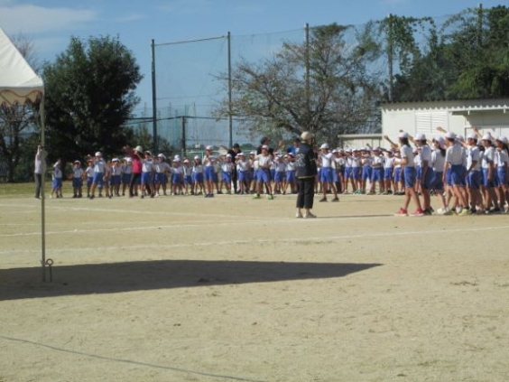本日1校時に、閉会式と応援の全体練習をしました。「一つ一つの行動をしっかり覚え、きびきびと行動し、返事やかけ声を全力で出すこと」をめあてに頑張りました。