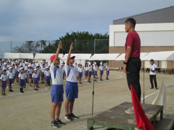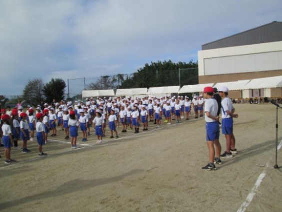 本日1校時に、応援の練習と開閉会式のリハーサルをしました。日曜日の運動会に向けて、きびきびとした行動と返事やかけ声を全力で出すことを頑張りました。応援よろしくお願いします。