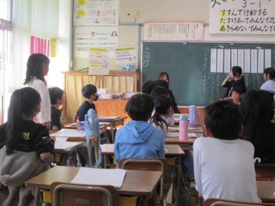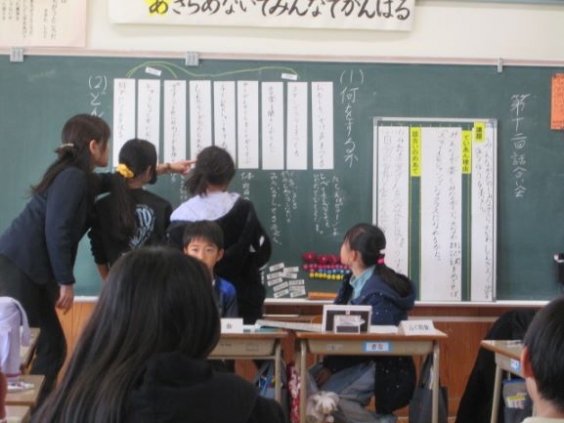 本日3校時に3年1組の子供たちが、議題「みんなで楽しみながら、大繩新記録をめざす方法を考えよう」について、話合いの柱を「みんなで楽しみながら新記録をめざす取組」と「そのための具体的な工夫」の2本立てて、学級会を開きました。3年1組の学級目標は、スマイル&ジャンプです。大繩が苦手な人も楽しみながら練習をして新記録を出せるように頑張れば、学級目標達成をめざすことができると考え、子どもたちは活発に意見交流をしました。