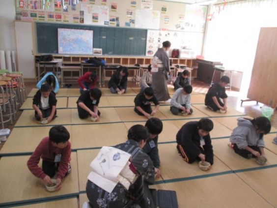 本日、茶道裏千家淡交会の方を講師にお招きして、日本文化クラブの児童が茶道の体験をしました。子供たちは一所懸命お茶を点てていました。ご多用な中ご来校いただきましてありがとうございました。