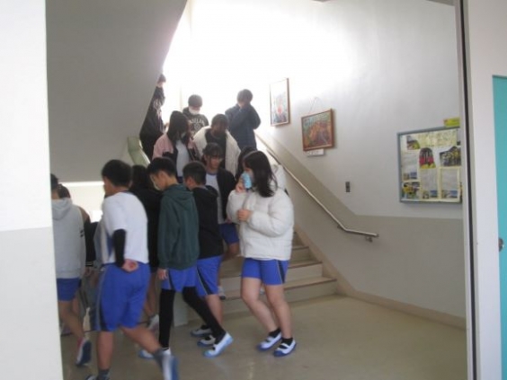 本日2校時に地震発生後、4階家庭科室からの出火を想定した避難訓練を行いました。真剣に、ハンカチで口を押えて、押さない、走らない、しゃべらない、戻らないを「お・か・し・も」の観点として取り組みました。校長先生から、地震はいつどこで起きるか予測がつかないことや自分の命、友達の命を守る行動を身に付けることの大切さ、火遊びは絶対にしてはいけないこと等の話をしていただきました。子供達は、真剣に校長先生の話を聞いていました。
