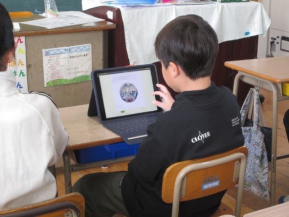 全校児童が子ども大牟田検定に挑戦しました。子ども大牟田検定とは、大牟田の歴史や施設、特徴的な動植物に関する問題に答えて正答数によって等級が認定される取組でタブレットを使ってオンラインで出題される問題に答えます。1年生は初めての挑戦でした。先生と一緒にタブレットの操作の仕方も学びました。