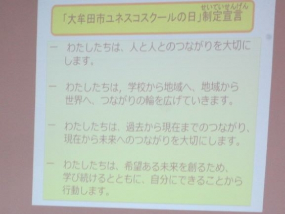 1月17日は「大牟田市ユネスコスクールの日」です。本日、朝の活動の時間にユネスコスクール記念集会を行いました。