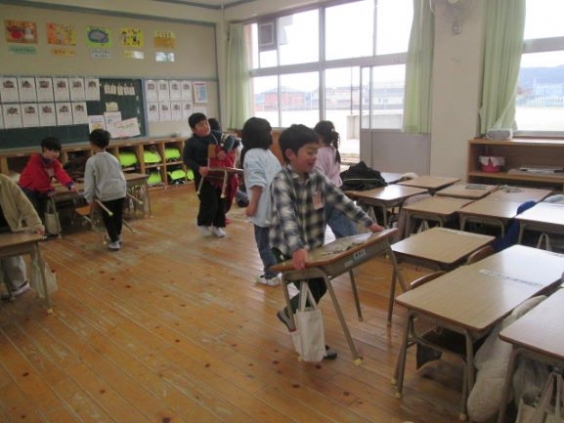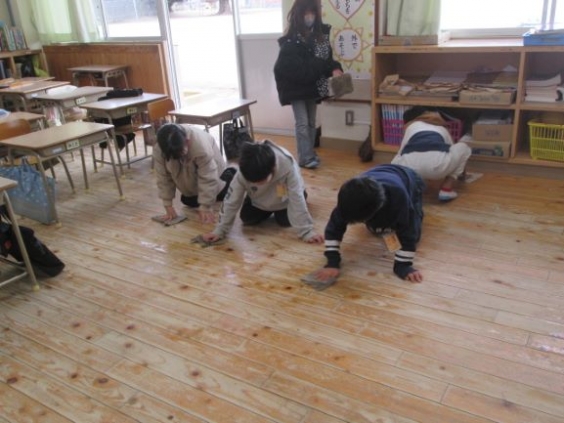 駛馬小学校では、はじめと終わりの時刻を守り、黙って丁寧に隅々まで掃除を頑張っています。あと片付けの後、掃除の振り返りをします。1年生も上学年のお兄さんやお姉さん、友だちと協力して時間いっぱい頑張っていました。一生懸命に掃除をした後は、心もすっきりして、集中して基礎タイムに取り組んでいました。