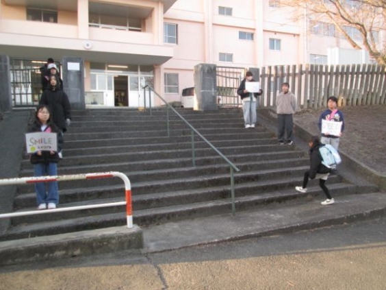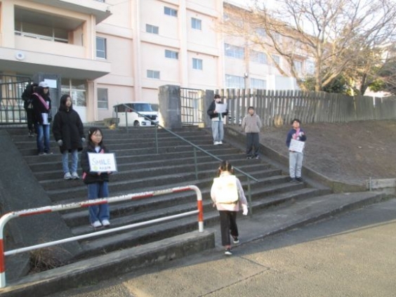 毎週水曜日に、「自分から進んで、きちんと止まって、相手の目を見て大きな声であいさつしましょう!」を合言葉に、児童会の皆さんで挨拶運動を行っています。気持ちのよい挨拶をして、駛馬小学校や駛馬校区が笑顔いっぱいになるように頑張っています。今日も、毎日お世話になっている見守り隊の方と心と心を通わせる挨拶ができました。挨拶の輪が広がっています。