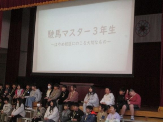 本日、学習発表会のリハーサルを行いました。各学年のタイトルは、1年生「こんなにのびたよ1年生!」、2年生「わくわく発見!2年生」、3年生「駛馬マスター3年生」、4年生「クリーンアップ諏訪川」、5年生「地域の高齢者の方々との関わりを通して」、6年生「世界遺産宮原坑のボランティアガイドを通して」です。明日の練習で更に磨きがかかると思います。当日の応援どうぞよろしくお願いします。