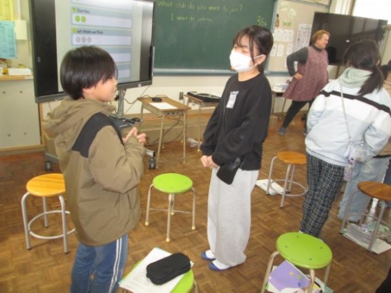 本日、3,4校時にLGTのルース先生に来校していただき、6年生が「中学生活でしたいことやがんばりたいことを伝えよう」の学習をしました。子どもたちは、ルース先生から部活動名の英語での言い方を教えていただいたき、どの部活動に入りたいかをペアやグループで伝え合っていました。また、ルース先生からアメリカの学校文化についての話も聞かせていただきました。ルース先生ありがとうございました。