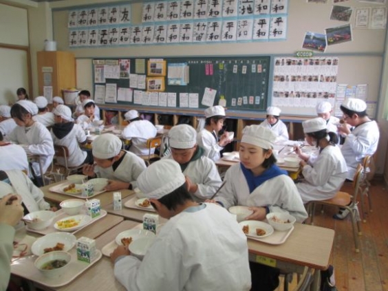 3月は6年生のみなさんが「もう一度食べたい」と思ってリクエストをした給食が取り入れられています。今日は第3位の鶏肉のからあげがでました。また、6年生の卒業を祝ってもち米にあずきやささげなどを加えて蒸し上げた、日本の伝統的な祝い料理の「赤飯」も出していただきました。子どもたちは、思いや願いのこもった給食を嬉しそうに味わっていました。