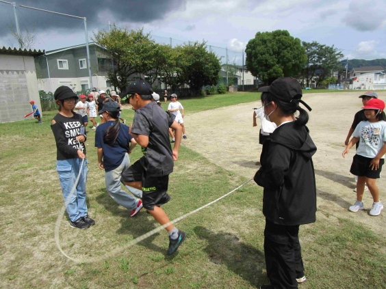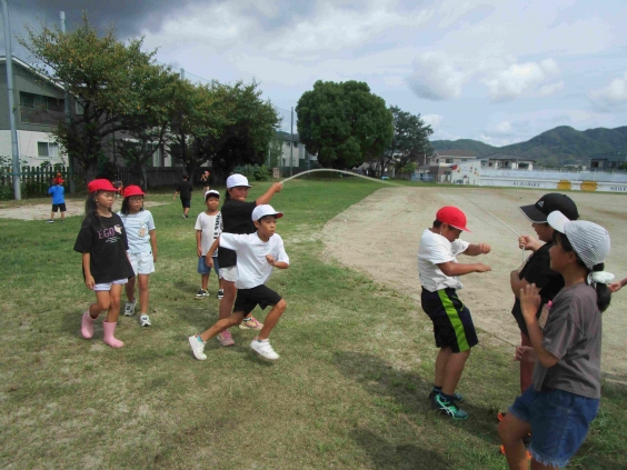 今年も10月12日に大牟田市スポーツ市民の祭典が御大典記念グラウンドで行われます。 出場予定の子どもたちを中心に、休み時間等を使って自主的に練習をしています。今日は、なわとび競争の練習をしていました。本番も頑張ってほしいと思います。(昨年、なわとび競争で5年生(現6年生)は優勝しています。)