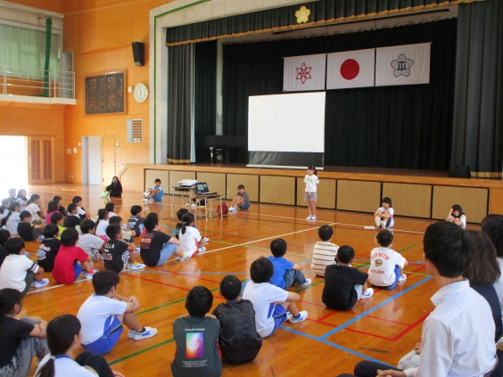 終業式では、代表児童7人が令和7年度前期(4月〜9月)に頑張ったことについて発表をしました。