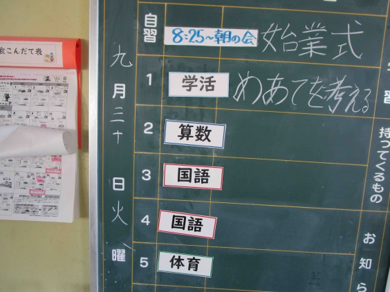 今日は後期の始業式ですが、給食がありました。高学年は6校時授業となります。ここがこれまでの始業式の日とは異なります。早速、運動会の練習も行いました。