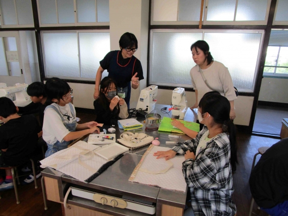 6年生は家庭科の時間にトートバックを制作しています。 今回は、ミシンボランティアの方3名に来ていただき、ミシンの使い方、縫い方について教えていただきました。 ミシンボランティアの先生方のおかげで、ミシンの扱いにも慣れ、上手に縫うことができていました。出来上がりがとても楽しみです。