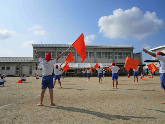 今年の運動会のスローガンが、体育館の窓に貼られました。 今年のスローガンは、「仲間と共に 最後まであきらめずに戦おう ひらピーを目指して」です。運動場からよく見える場所です。 屋外での練習も始まっています。子どもたちは、このスローガンを毎日確認しながら、練習に励んでいます。