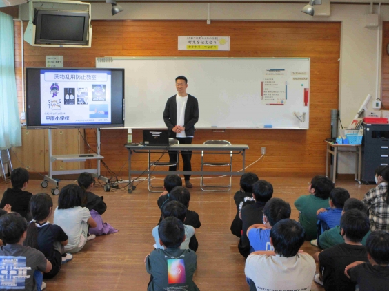5,6年生を対象に薬物乱用防止教室を行いました。講師に学校薬剤師の松尾先生をお招きしました。