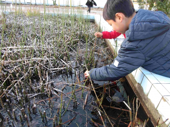 1月28日(水)の朝も冷え込みました。最低気温も氷点下となり、運動場にはうっすらと霜がおりていました。 始業前の運動場では、「冷たい」と言いながらも、霜を集めたり池にはった氷をつかんだりして遊ぶ子どもたちがいました。 霜がおりた日は、高い確率で晴天となります。放課後、少しあたたかくなった運動場では、元気に遊ぶ子どもたちの声が響いていました。