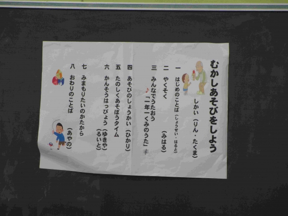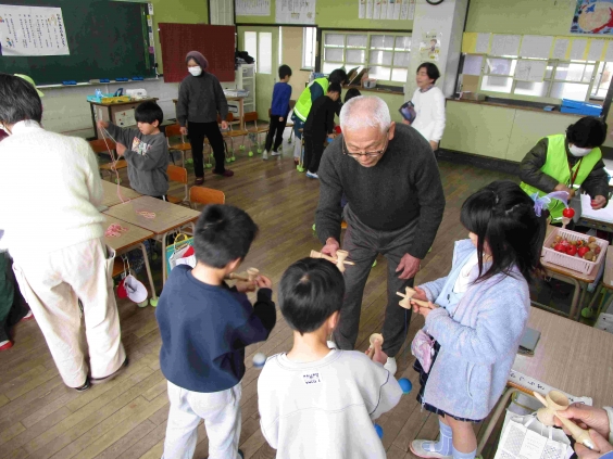 地域から11名の昔遊びの名人にお越しいただき、子どもたちに昔遊びを教えていただきました。