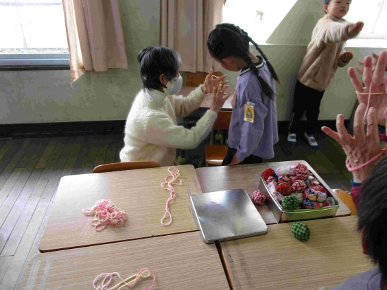 2月16日(月)1年生が昔の遊びに挑戦しました。