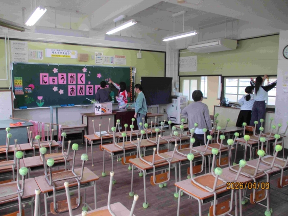 入学式の前日準備を5年生、6年生及び職員で行いました。体育館や教室、廊下の掃除をし、座席を作ったり飾り付けをしたりしました。新1年生に配布する学用品やお便りもきちんと揃えました。次は何をするのかしっかりと考えて行動する姿に、高学年の頼もしさを感じました。6年生は、明日の入学式にも参加します。新1年生の皆さん、6年生による平原小学校のしょうかいを楽しみにしてくださいね。新1年生保護者の皆様、明日の入学式は9時15分から9時40分が受付です。6年生と職員一同、お待ちしております。