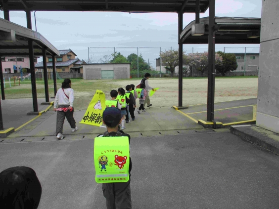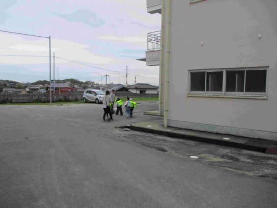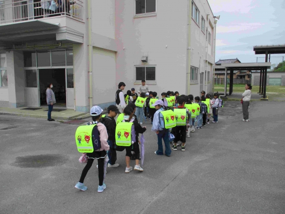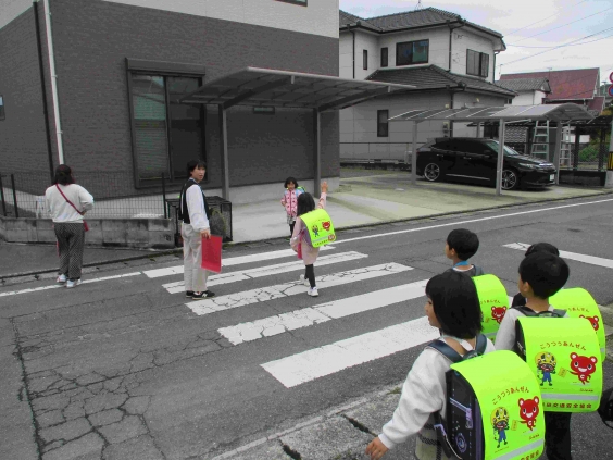 1年生が元気に登校してきました。1年生は17日の金曜日から給食が始まります。それまでは、11時40分から帰る方向のグループ別で下校します。それぞれのグループで、職員が下校の約束を確認しながら引率します。横断歩道では、しっかりと左右の安全を確認し、手を挙げて渡ることができました。木曜日まで下校指導を実施し、安全な登下校を身につけます。