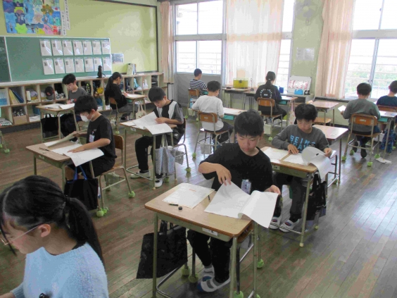 4月23日、6年生が、全国学力・学習状況調査(国語、算数)に臨みました。これは、教科問題と児童質問調査で学力や学習・生活の実態を把握して、教育のどこを伸ばし、どこを改善するかを明らかにするための調査です。これまでの学習の成果を発揮しようと、6年生は集中して問題に取り組んでいました。来週は、質問紙調査を実施します。結果は、子どもたち一人ひとりの学びをよくするための材料とし、授業の工夫や子供たちへの学習支援に生かしていきます。
