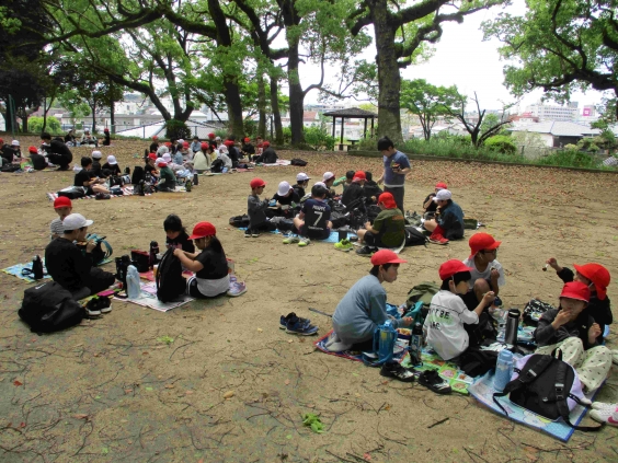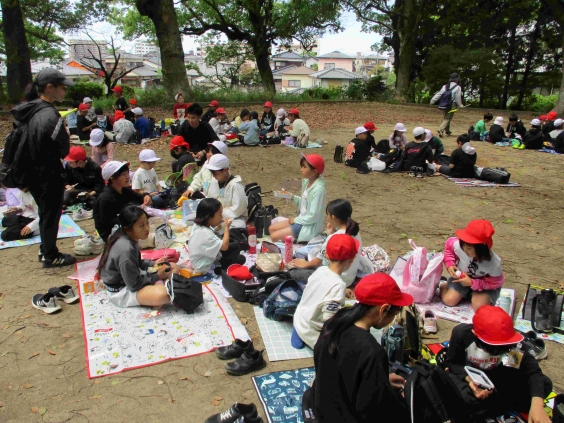 4月24日、歓迎集会と遠足を実施しました。6年生による校歌の鼓笛演奏で1年生が入場し、2年生からお祝いのメッセージが書かれたペンダントをプレゼントしてもらいました。1年生は、全校児童の前で、しっかりと自分の名前と好きなものを紹介することができました。ゲームも大変盛り上がり、1年生はもちろん、全校児童で楽しんでいました。集会の後はペア学年で鳥塚公園へ出発です。1年生は6年生とペアです。お弁当も一緒に食べました。