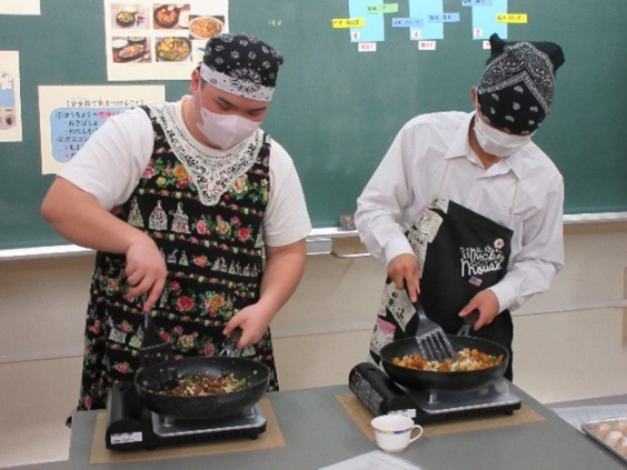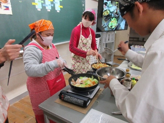 家庭科の授業「世界の料理」第2弾として、フィリピン料理の調理実習を行いました。 今回は、フィリピン出身の生徒さん3名に料理をしていただき、みんなでフィリピン料理について学習しました。授業の前に下準備を行い、多くの生徒さんに食材のカットを手伝ってもらいました。調理は、フィリピン出身の生徒さんに実践していただき、食材を炒める時間や調味料の分量などを実際に見て学びました。できた料理は、調理実習に参加したみんなで美味しくいただきました。あと1回「世界の料理」の学習を計画しているます。とても楽しみです。