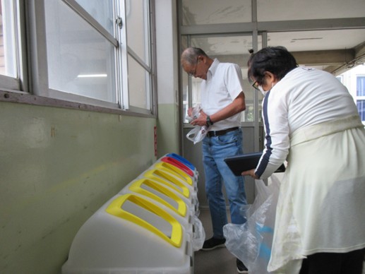 松原中学校の生徒会が今取り組んでいるボランティア活動「ペットボトルキャップ回収」に、ほしぞら分校も協力しました。生徒さんや教職員で集めたペットボトルのキャップを色別に仕分けをして、松原中学校の警備員室前にある回収Boxに入れました。本校の生徒さんや教職員はもちろん、大牟田市教育委員会の谷本教育長にもご協力いただき、たくさん集めることができました。今後も様々な取組をとおして、松原中学校の生徒会の皆さんとは交流ができればと思います。
