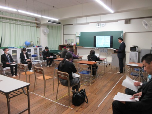 11月29日(土)18時30分から本校3年生教室で「令和7年度大牟田市立夜間中学入学希望者説明会」を開催しました。来年度の入学を希望する方に対し、大牟田市教育委員会学校教育課から大牟田市における夜間中学設置に係る基本方針と入学までの流れについて説明がありました。本校からは、開校から今までの学習状況や学校生活の様子などについて説明を行いました。