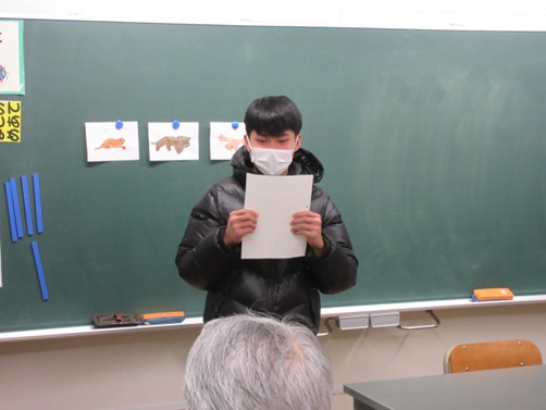 3学期の学級活動では、「生活を綴ろう」というテーマで、生徒さんが夜間中学に入学した理由やその時の思い、入学後や今年一年間で感じたことなどを作文にまとめてきました。その内容を昨日「語り、つなぐ会」で発表しました。 生徒さん一人一人が様々なことを感じ、夜間中学に来て良かったことや夜間中学を大切にしたいという思いが伝わるとても素敵な学級活動でした。 生徒さんと教職員一同は、改めて夜間中学の意義を感じ、この学校をさらに素敵な学校にするために尽力し、継続させなければならないと感じた時間でした。