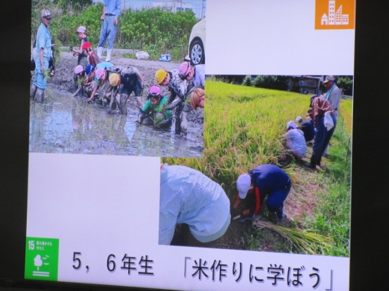 そこで,本校では本日「ユネスコスクールの日集会」を行いました。高倉洋美校長先生は,ユネスコスクールの意味を話すとともに,すべての上内っ子が身近な地域,人,ことに関わって進めている活動を価値づけました。上内小では,「心の中に平和のとりでを築く」活動を数多く行っています。
