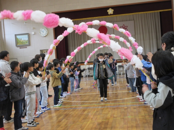 5年生児童が企画・運営したお別れ集会は,6年生への感謝の気持ちが十分に伝わりました。各学年からの感謝の言葉や1年生からのプレゼントを受け取り,「リーダーとしてこの1年間努力してきてよかった」という思いにあふれていました。 最後は先生たちからの歌のプレゼントもあり,6年生は感極まっていました。 とてもあたたかい気持ちに包まれたお別れ集会に5年生は,「4月からは自分たちの番だ!頑張ろう!」という気持ちをもちました。