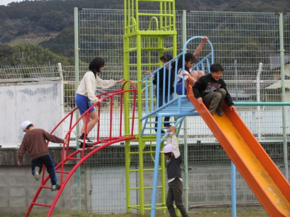 縦割り給食週間の最終日の今日,上内っ子は昼休みに縦割り遊びを行いました。 6年生が下級生の希望を聞きながら遊びの計画を立て,全員でドッジボールや鬼ごっこ,一輪車遊びをして楽しみました。先生たちも仲間に入ってボールを投げたり一緒に走ったりしました。 どの学年もみんなで仲良く遊ぶ上内小の伝統は,これからも続いていきます。
