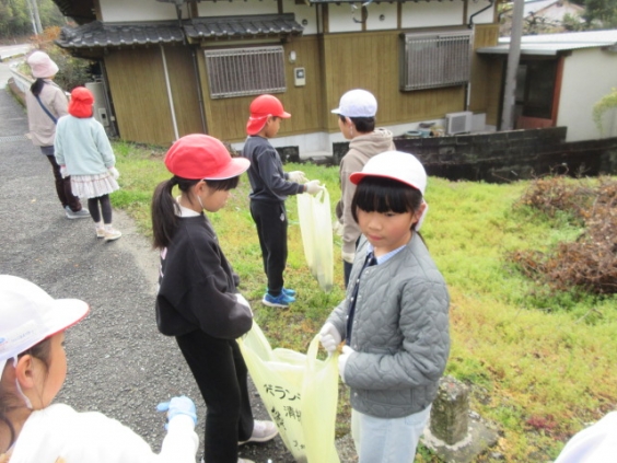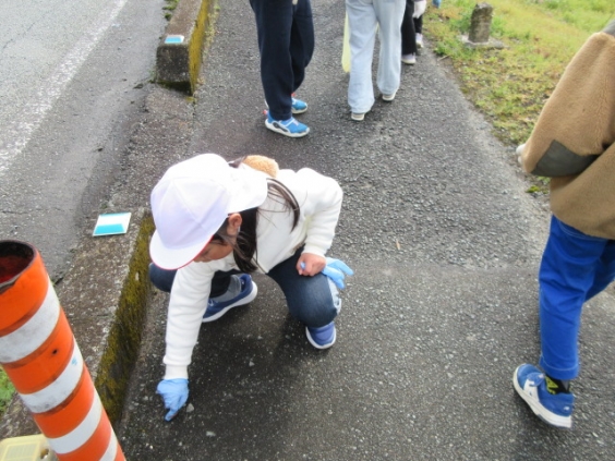 3年生の児童が学校から上内峠までの歩道を歩き,総合的な学習「上内よかとこ見つけ隊」の学習の一環として校区内の美化活動を行いました。これは児童の気づきから生まれた活動です。