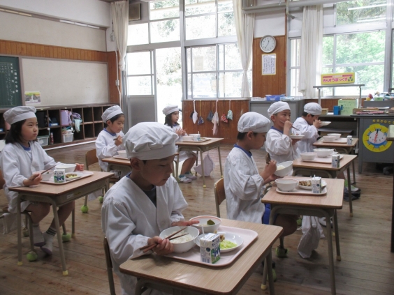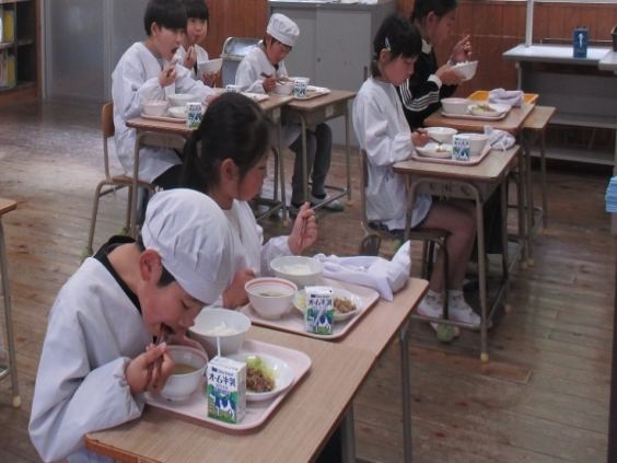 2年生から6年生は、今日から今年度の給食が始まりました。新しい学年になってはじめての給食で、子供たちはとても楽しみにしていました。 てきぱきと準備を済ませ、元気な「いただきます」の声が聞こえてきました。笑顔で給食を食べている姿がとても印象的でした。 1年生は、17日(金)から給食が始まります。とても楽しみにしているようですね。これから、しっかり給食を食べて、丈夫な体を作っていきましょう。