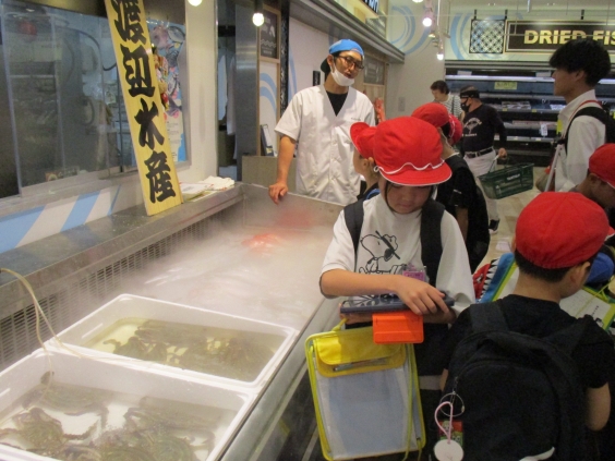 商品を陳列されているお店の方に「どんなことを考えて商品を置いているのですか?」など、いろいろな質問をしたり、商品が並んでいる様子を写真に撮ったりしました。お店の方々は、賞味期限等を確認しながら商品の入れ替えを行ったり、お客さんが見やすいような並べ方をしたり、いろいろな地域の品物を並べたりと、消費者のニーズとともにどうすれば品物を買ってもらえるか様々な工夫をしながら仕事をされていました。