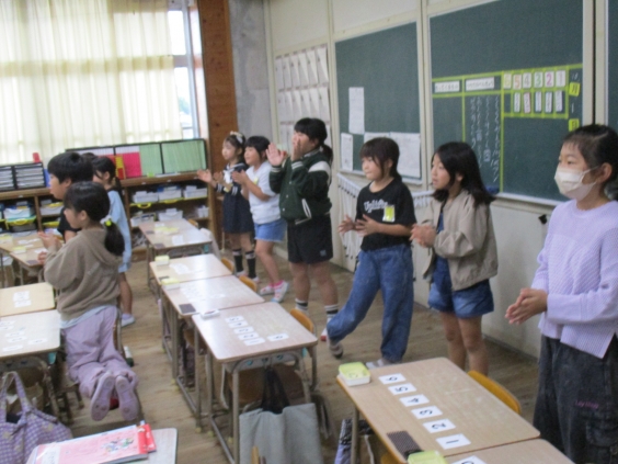 今日はALTのリンダ先生が来校され、1年生から5年生まで一緒に学習しました。