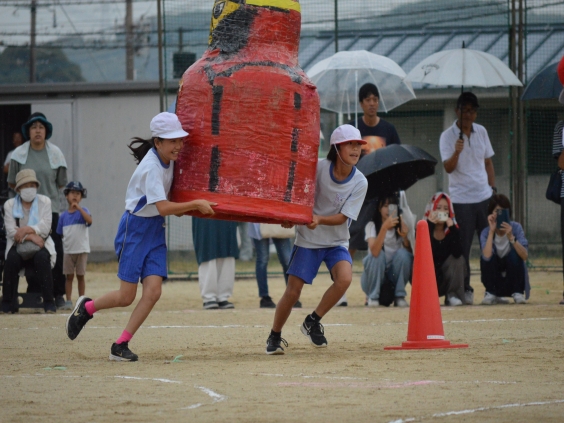 1,2年生のかわいいダンスや白熱した玉入れ合戦、徒競走を行いました。