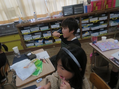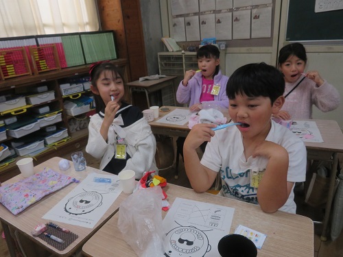 今日、2年生では養護教諭と連携して、歯みがき指導を行いました。 実際に染め出し液を使って、どれくらい磨き残しがあるのかを確認しました。子供たちは、「給食の後、歯みがきをしたのに赤くなった。」と、とても驚いていました。磨き残しが多い場所や磨き方を知り、自分の歯を丁寧に磨きました。 また、今日から全校で歯みがきカレンダーに取り組みます。ご家庭でもお声かけや家族一緒に取り組んでいただけますとありがたいです。