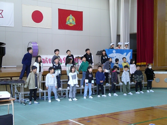今週の土曜日は本校で学習発表会を実施します。 当日の発表に向けて、全学年懸命に練習に励んでいます。 今日は、1年生が音読劇の練習に取り組みました。それぞれのセリフを元気な声で言ったり、音楽にのって歌ったりしながら、発表の練習ができました。 「くじらぐも」を音読劇として発表します。国語科で学習した読みを生かし、みんなの思いをくじらぐもに届けるように発表していきます。当日の発表を楽しみにしてください。
