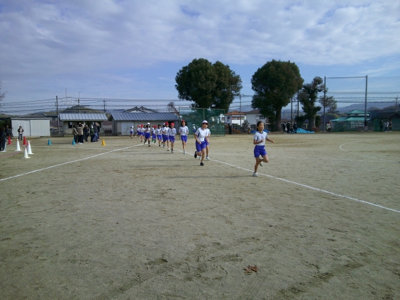 朝は冷え込みましたが、太陽の日差しのおかげでベストコンディションの中、子供たちは持久走大会にのぞみました。自分の目標を達成できるよう走りこんだ成果を発揮できるよう激走しました。おうちの方や地域の方からの声援もパワーとなり、日頃の練習よりもハイペースで走る子もたくさんいました。
