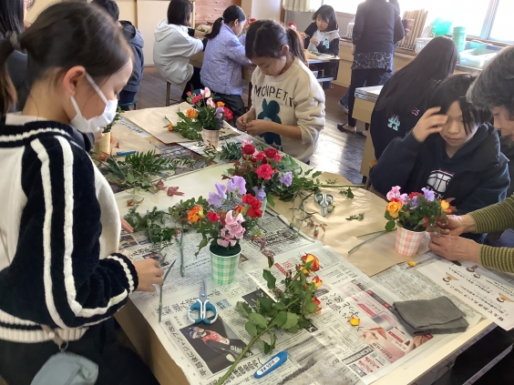 身近な自然に美を感じ、芸術として昇華させる華道を体験する機会はなかなかありません。今日は、子供たちの感性を伸ばすとてもいい機会になりました。大牟田文化華道連盟の皆様、ありがとうござました。