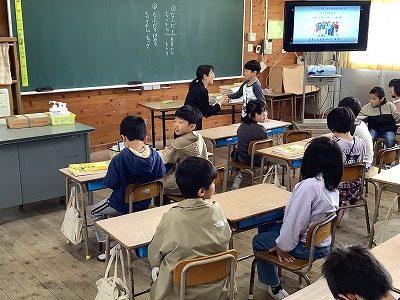 また、2年生の教室では、子供たちに名札と教科書を渡すときに、一人ひとり握手をして渡していました。2年生の子供たちは、ちょっとはにかんだ様子で受け取った後、みんなにこにこと嬉しそうにしていました。