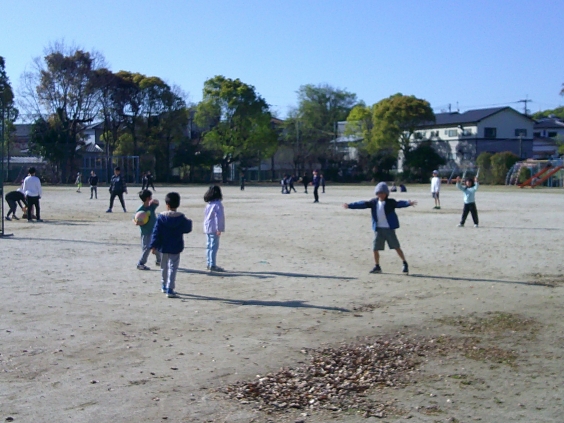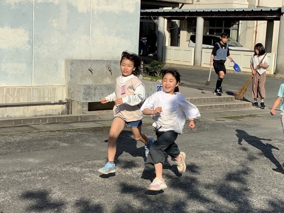 今日も、子供たちが笑顔で登校してきました。門の前で立っている校長先生に気持ちの良い挨拶をした後、元気に坂道を登って学校へ到着!教室でランドセルを置いて、宿題や提出物を出したら、運動場へ駆け出していきます。春の陽気の心地よさの中、朝から多くの子供たちが運動場で体を動かしていました。