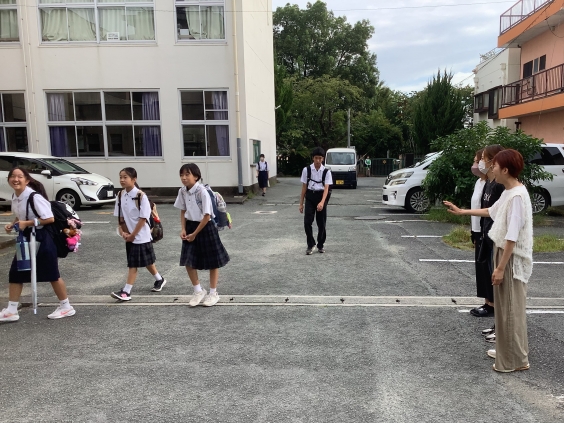 過日(9/12)朝、PTA朝の挨拶運動が実施されました。 PTAの担当役員の方に加え、各小学校校区の主任児童委員さんも一緒に生徒たちに朝に挨拶運動を行いました。 生徒さんの中には、立ち止まって、「おはようございます」と元気よく挨拶できる様子も見られました。