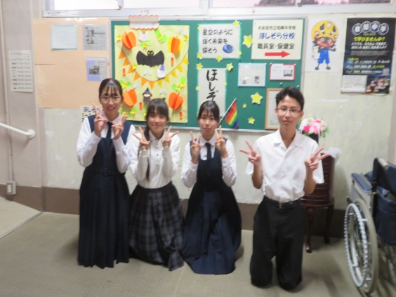 昨日10/22(水)放課後、本校生徒会が実施しているペットボトルキャップ回収について、校内の夜間中学区『ほしぞら分校』に協力依頼に行きました。 啓発用ポスターは生徒会役員手作りです。 早速、教室内に掲示していただき、ペットボトルキャップ回収に協力いただくことになりました。よろしくお願いします。