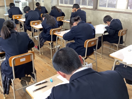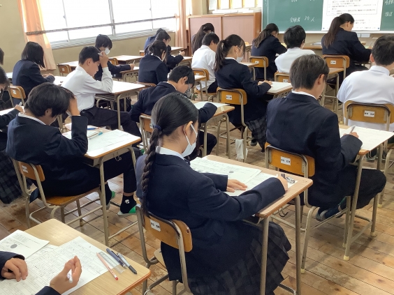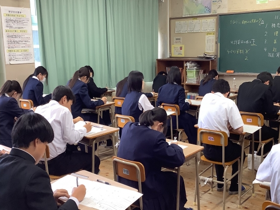 本日11/12(水)から3日間、2学期期末考査が始まりました。 2学期中間考査から、または2学期全体のまとめとなるテストです。 1〜3年生、しっかりと臨んでいました。 特に、3年生にとっては進路選択の関わる大事なテストとも言えます。 今日も含め3日間、全力で頑張ってください。