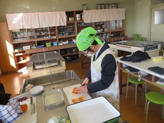 12月9日(火)、2年1組家庭科の授業で、柿の皮むき実習を行いました。 使用した「富有柿」は、福岡県農林水産部から提供いただいた福岡県産の柿です。 本校では、2年生の家庭科実習で利用しました。 皮むきをした柿は、生徒たちがおいしくいただきました。 2年2組の本実習は、12月11日実施予定です。