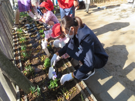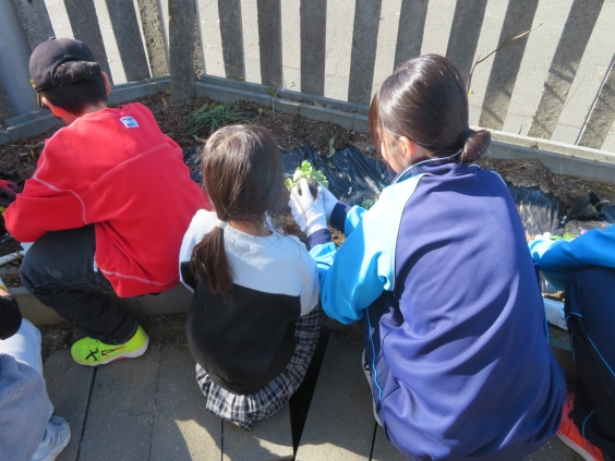 本日(12/12)昼休み、大正小学校の一角にある大正町コミセンの花植え作業を松原中ボランティア「ちょこボラ」が協力して行いました。 昨日11日に実施予定でしたが、突然の雨で延期となっていました。 春には、素敵な花たちが咲きそろうことを楽しみにしています。