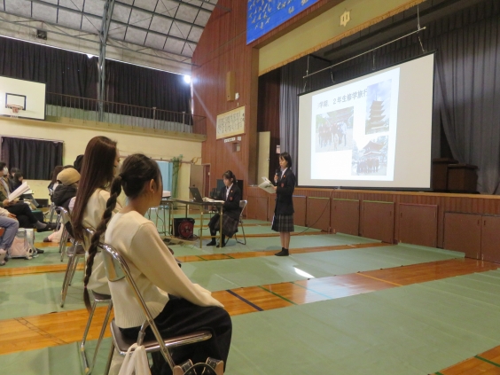 1/16(金)午後、令和8年度入学 新入生説明会を実施しました。 本校の接続小学校である大正小学校、中友小学校の6年生が保護者とともに参加しました。 小学校と違う中学校教育の特徴や学校生活の様子、生徒指導の在り方等、生徒会執行部の司会進行によって、順序良く紹介等を行うことができました。 4月の入学式でお会いできるの楽しみにしています。