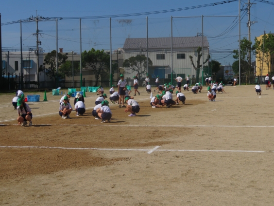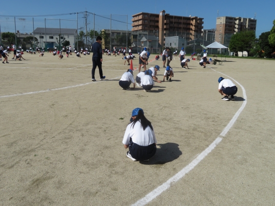 グラウンドで石を見つけたら、必ず拾いましょう!!頑張れ、松原中!